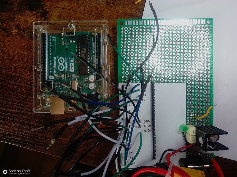 Le module Arduino UNO une foi câble et alimenté en 12 Volts DC